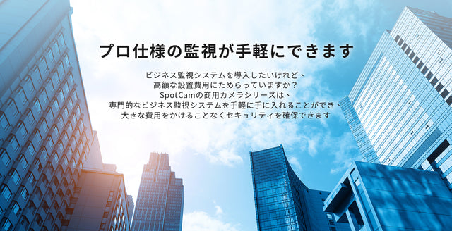 ビジネス屋外カメラ すべてのビジネスカメラを表示 数量 カートに追加 SpotCam BC1 ¥12,999¥11,990 数量 カートに追加 数量 カートに追加 SpotCam BCW1-P ¥18,990¥15,790 数量 カートに追加 オプションを表示 SpotCam BCW1 ¥16,999¥12,890 オプションを表示 オプションを表示 SpotCam PT1 ¥19,990¥16,990 オプションを表示 数量 カートに追加 SpotCam MBC1 ¥17,990¥12,990 数量 カートに追加 最後の在庫! 数量 カートに追加 SpotCam MD1 ¥17,990¥13,490 数量 カートに追加 すべてのビジネスカメラを表示